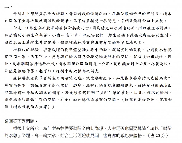 #113學測國文寫作情意題